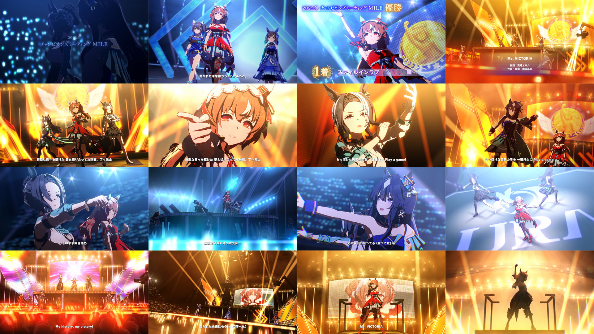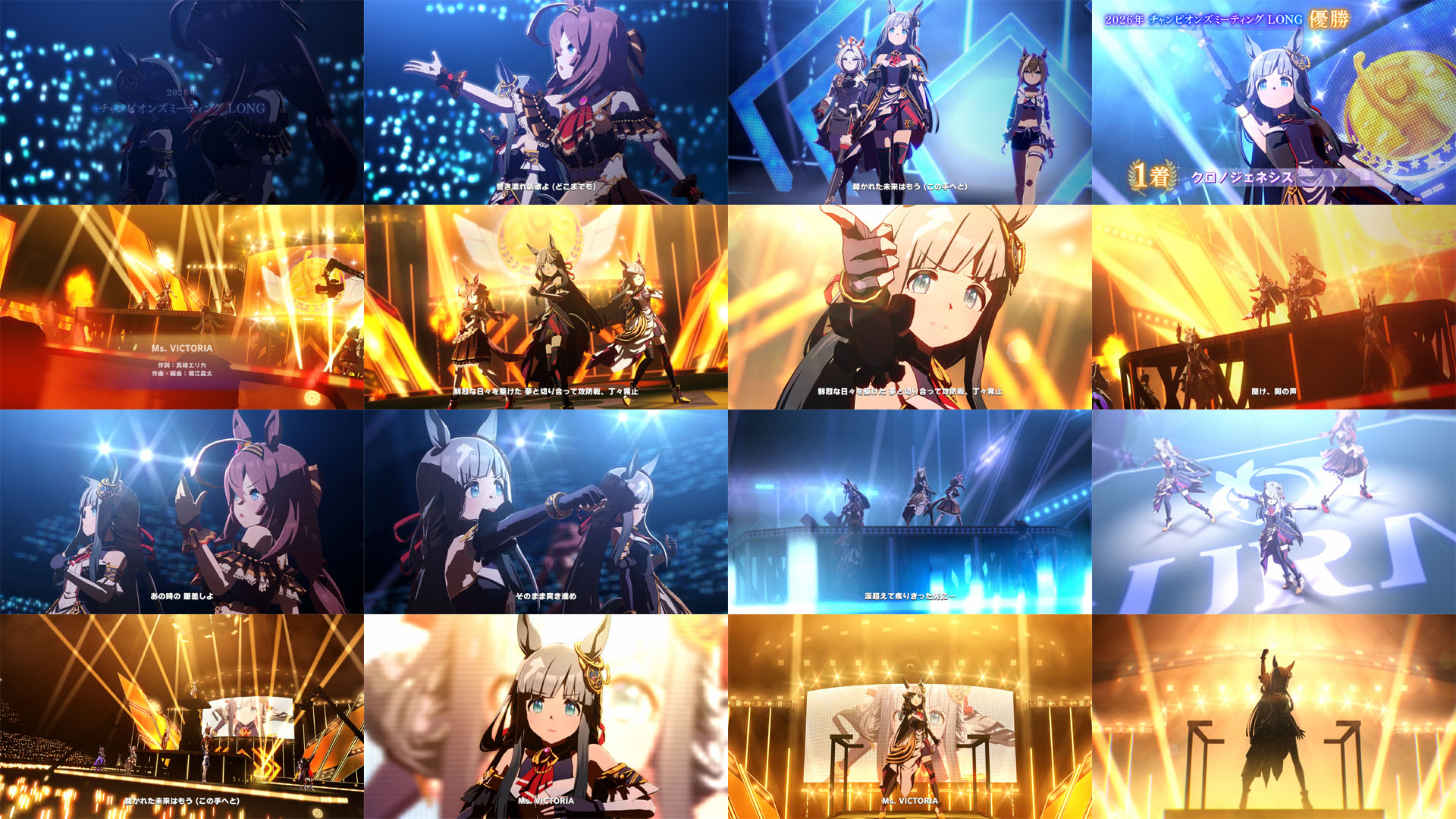 第43回チャンミは、Bグループ1位でした。温泉郷シナリオでは本育成していないため、今回もシニア夏合宿までおまかせで育成したクロノ、オル、シュヴァちの 3人で出走。ラウンド1が 4勝16敗、ラウンド2が35勝 5敗、決勝は逃げ×2、先行×5、追込×2の争いとなり、3/4バ身差でクロノとオルの1-2フィニッシュになりました。