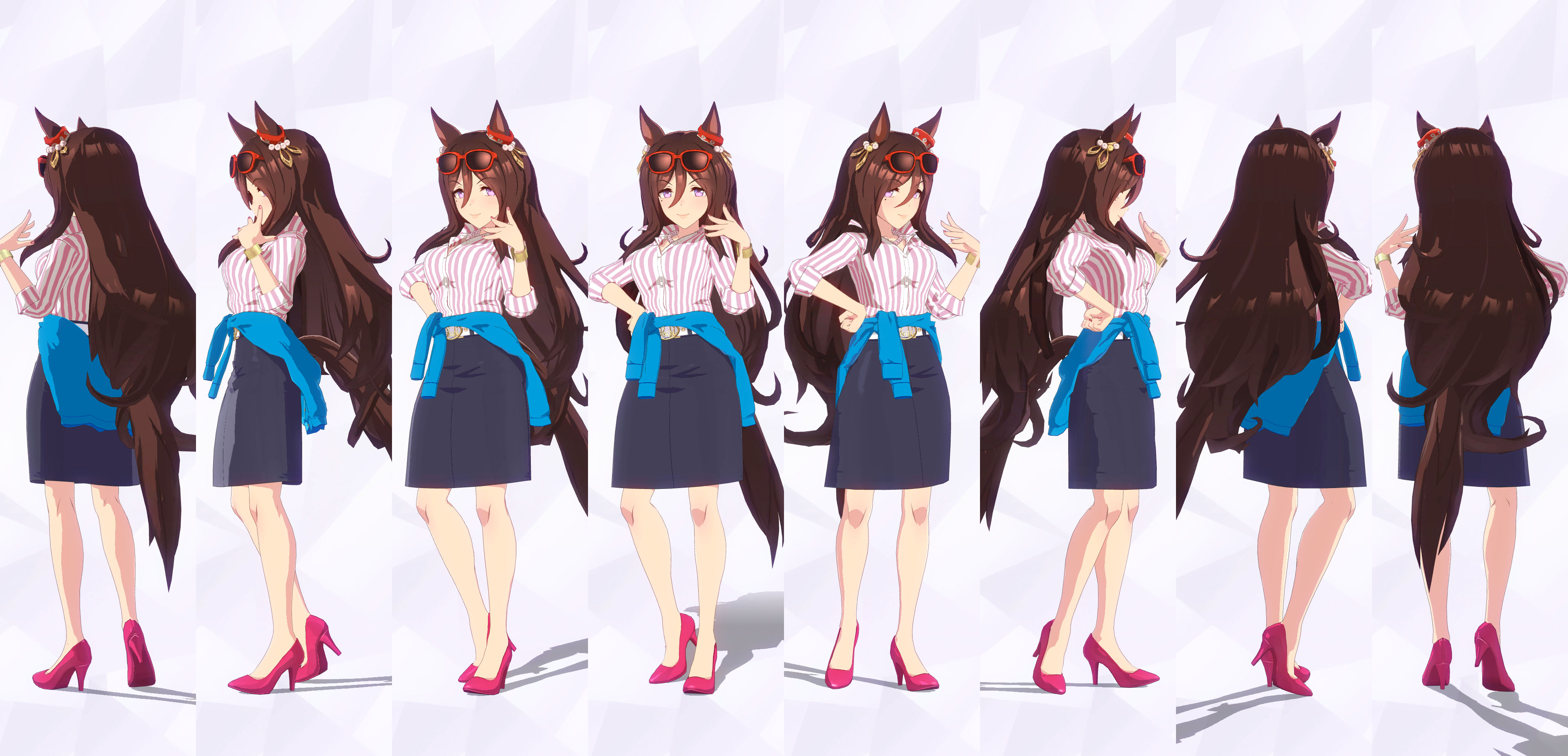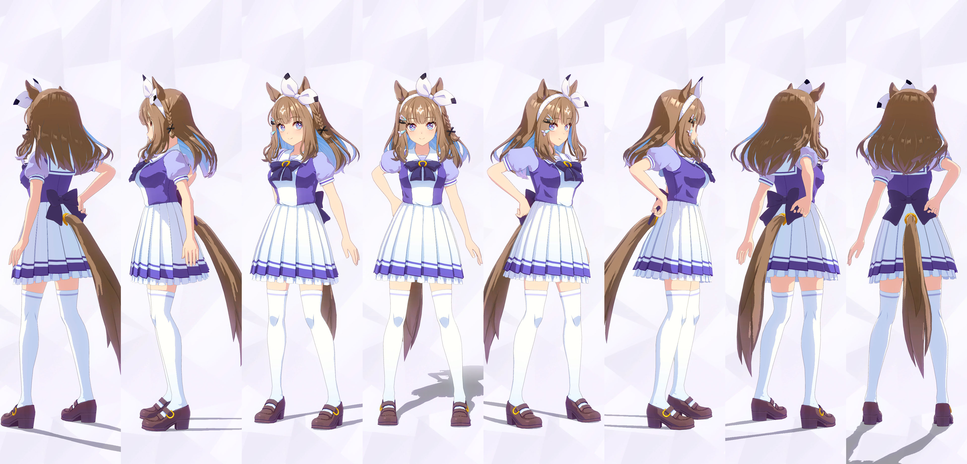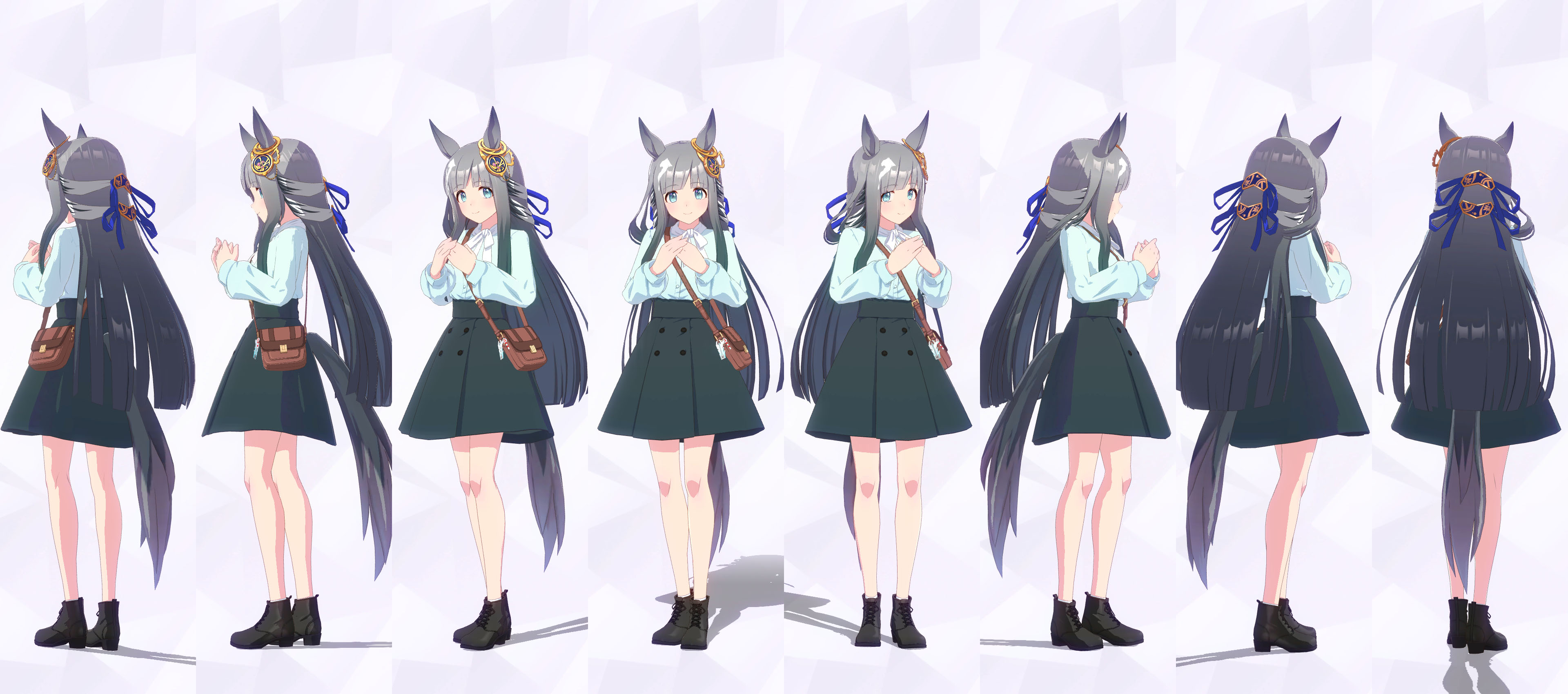 今日のアップデートでトレーナーノートの仕様が変更されて、サポカが実装済みのキャラはアングル変更ができるようになりました。まずは、来年 2月の五周年に実装される可能性が高いクラシック三冠牝馬アーモンドアイです。既にラッキーライラック、デアリングタクト、クロノジェネシス、サトノダイヤモンド、サトノクラウン、シュヴァルグラン、フサイチパンドラがいるため、育成シナリオに必要なキャラは揃っています。