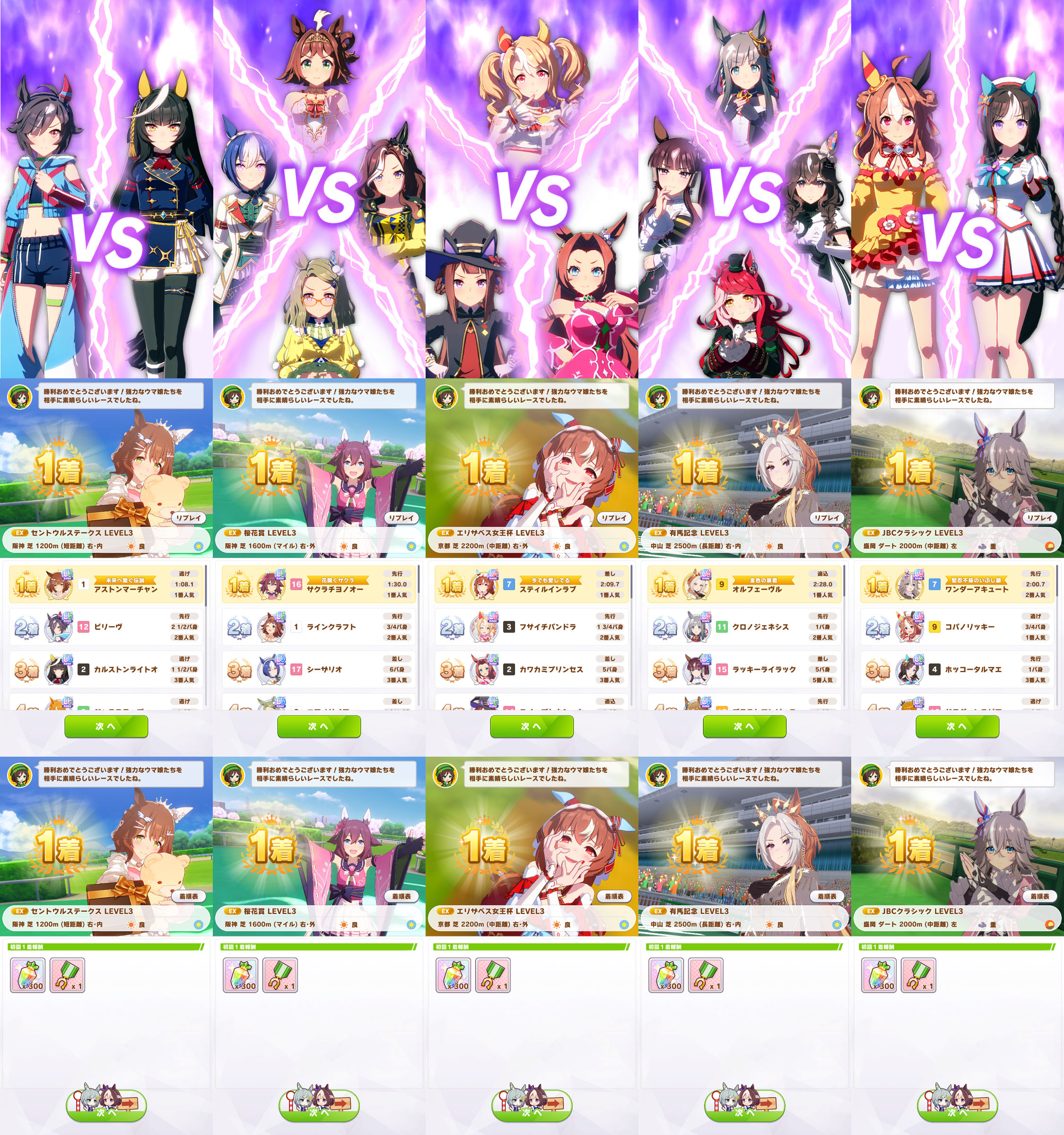 長らく放置していた「第6回マスターズチャレンジ」ですが、イベント終了まで残り一週間を切ったので、Level3を全てクリアしました。新規には育成せず、全て既存キャラで出走。JBCクラシック(ダート中距離)は、チムレ掛け合いボイス回収用に育成した芝中距離アキュートでクリアしました。