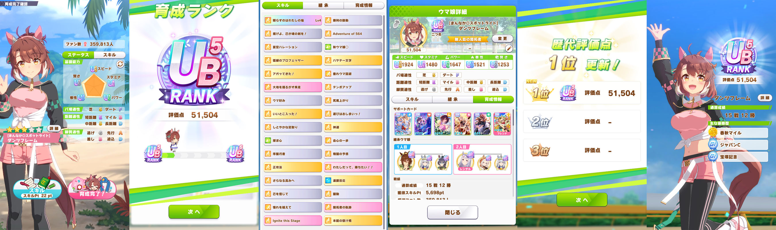 4,438★3UB551,504無人島359,8132025/10/20初回育成、中距離先行---