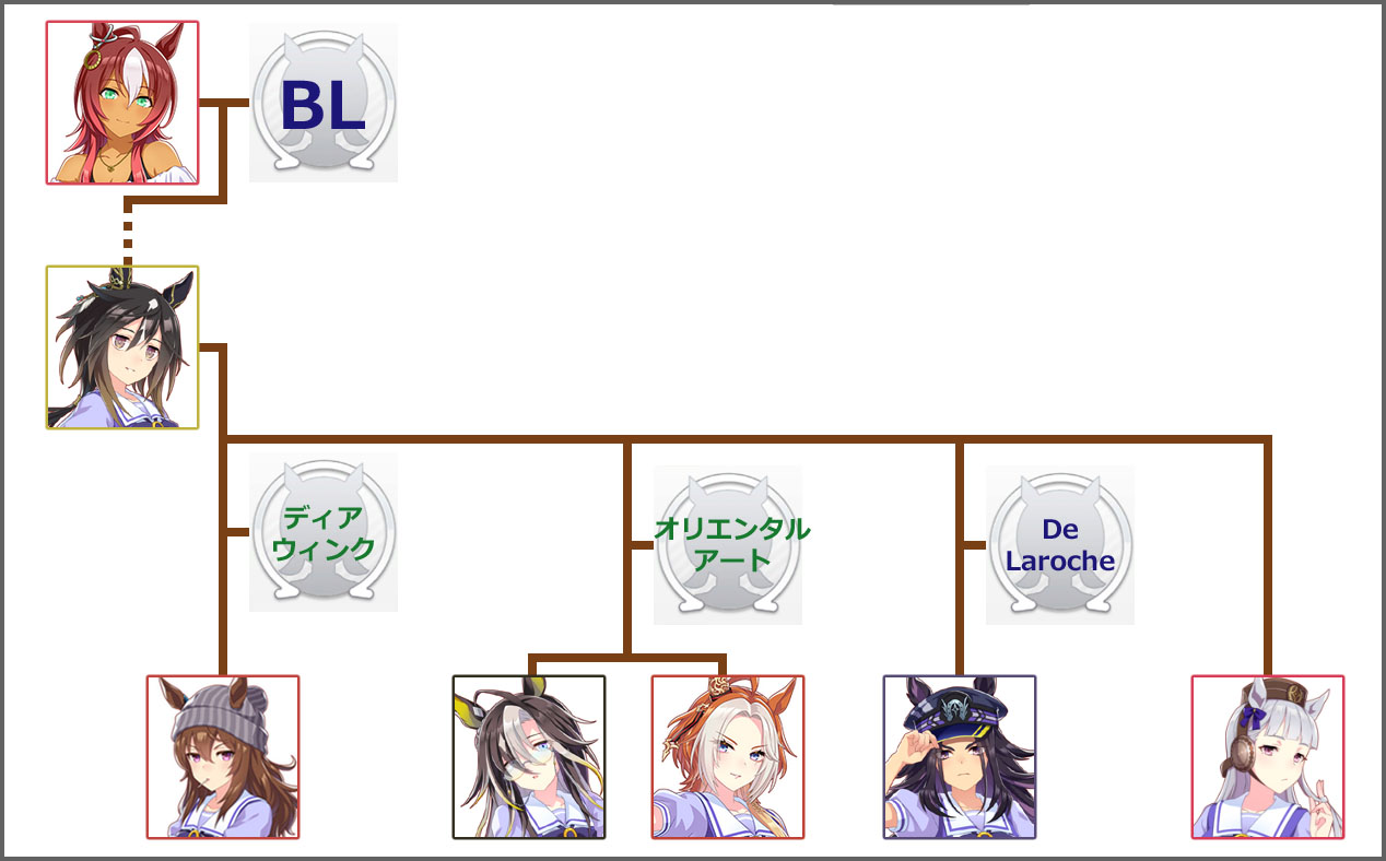 モチーフ馬のナカヤマフェスタは、ダーレーアラビアン系の26世代目です。ドリームジャーニー、オルフェーヴル、フェノーメノ、ゴールドシップもナカヤマフェスタと同じステイゴールド産駒です。